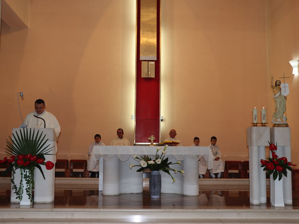 Proslava mature započela u 18:00 h slavljem svete mise u župnoj crkvi Presvetoga Srca Isusova za djelatnike škole, maturante i njihove roditelje. Euharistiju je predslavio vlč. Josip Antukić uz suslavlje mons. Marka Tomića i vlč. Ivana Ivančevića, župnika na Uzdolu.