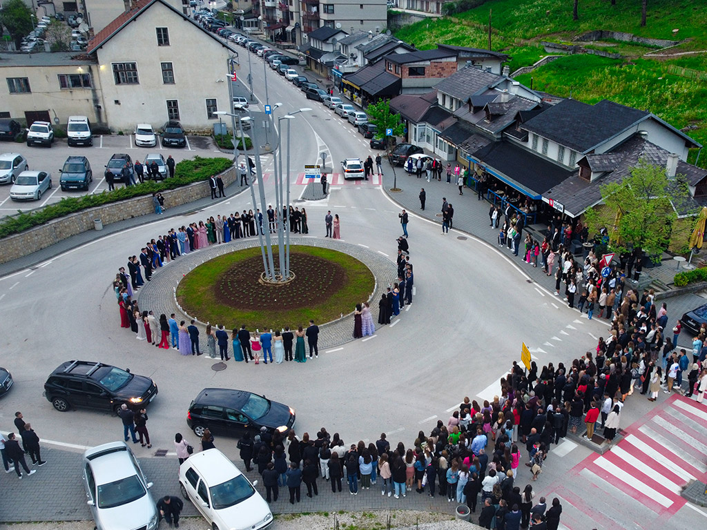 Nakon misnoga slavlja uslijedilo je zajedničko te pojedinačno fotografiranje na Trgu dr. Josipa Stadlera ispred župne crkve, a potom su maturanti u svečanoj povorci prošli središtem grada do motela Rama predvođeni ramskim mažoretkinjama.