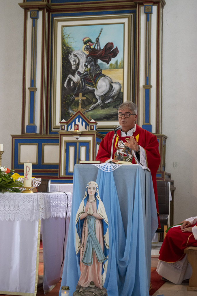 Vlč. Jozo, koji je inače bio župnik u Morančanima, je u homiliji približio život Sv. Jurja mučenika te progovorio o hostiji - krvi i tijelu Kristovu koja okuplja vjernike diljem svijeta već 2000 godina. Nadalje je posvijestio kako je Isus dragovoljno prikazao sebe za čovjekove grijehe i na križu obećao desnom razbojniku da će "istoga dana hoditi s njime u raju" dok je prekorio drugoga koji ni u smrtnom času ne prihvaća otkupiteljsku žrtvu kojoj svjedoči.