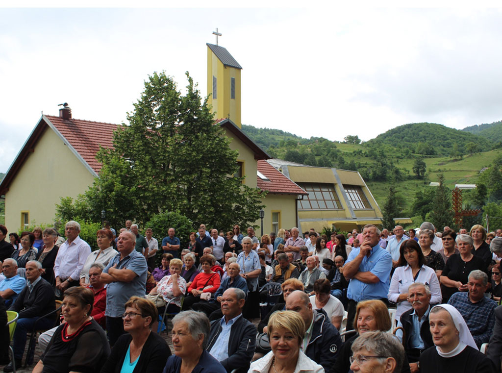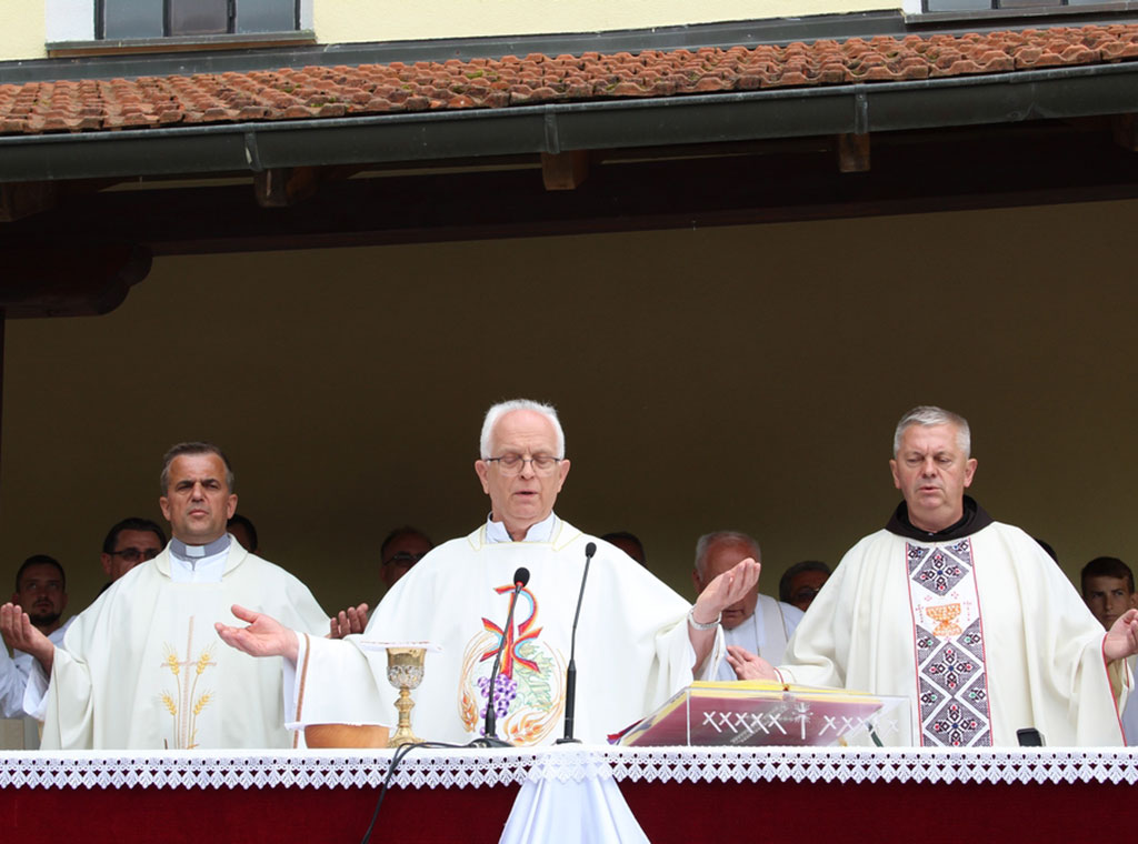 Nakon procesijskog dolaska na prostor vanjskog oltara, svečanu pučku misu uz koncelebraciju 11 svećenika sudjelovanje mnoštva vjernika predslavio je mons. Marko Tomić, župnik župe Prozor.