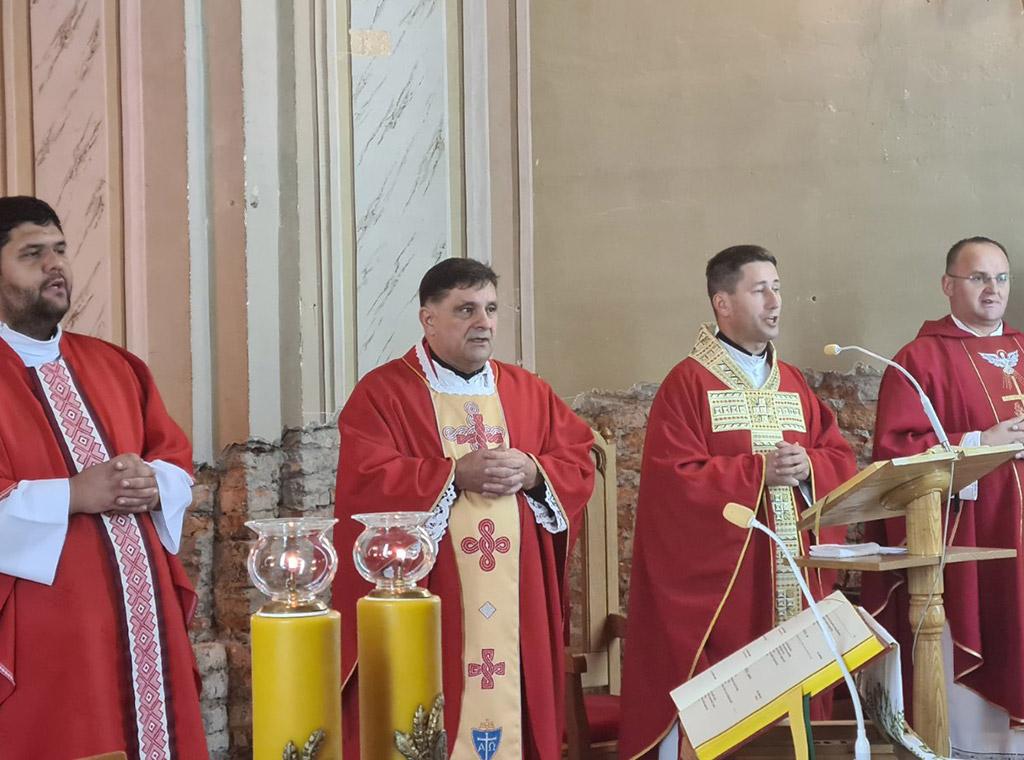 Euharistijsko slavlje prevodio je brčanski župnik i dekan preč. Damir Ivanović, u koncelebraciji sa župnikom u Vrbanji i Soljanima vlč. Matijom Aušićem, župnikom u Posavskim Podgajcima, Rajevu Selu i Strošincima vlč. Markom Mikićem te župnikom u Gunji i upraviteljem marijanskog svetišta u Šumanovcima vlč. Ivanom Živićem.