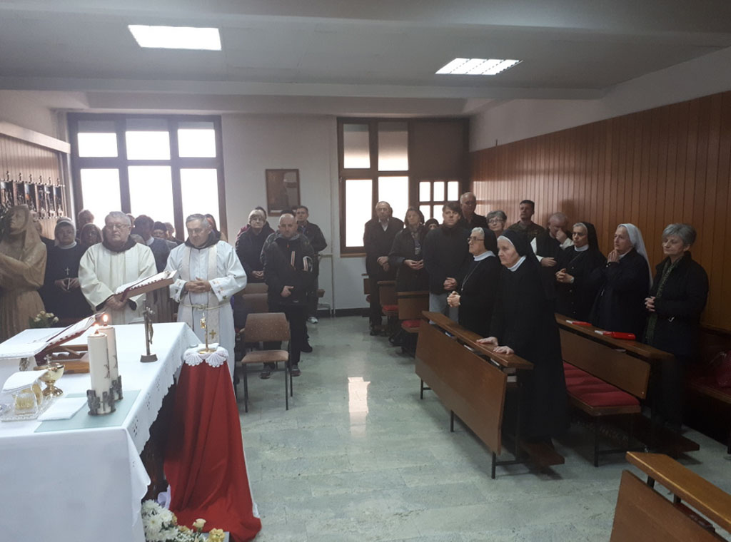 Ne tako malu samostansku kapelicu ispunili su vjernici laici kao i gosti te prijatelji sestara. Sveto misno slavlje predvodio je vlč. Pero Ivan Grgić, kancelar Banjolučke biskupije, uz koncelebraciju sedam svećenika dekana i župnika banjolučkog preč. Vladislava Žarka Ošapa; župnika iz Derviša i Budžaka vlč. Marijana Stojanovića; župnika u Mariji Zvijezdi o. Zvonka Topića; župnika motičkog fra Duje Ljevara, župnika barlovačkog fra Ive Orlovca, župnog vikara na Petrićevcu fra Ante Ivanovića te samostanskog i župnog vikara na Petrićevcu fra Tomislava Svetinovića.