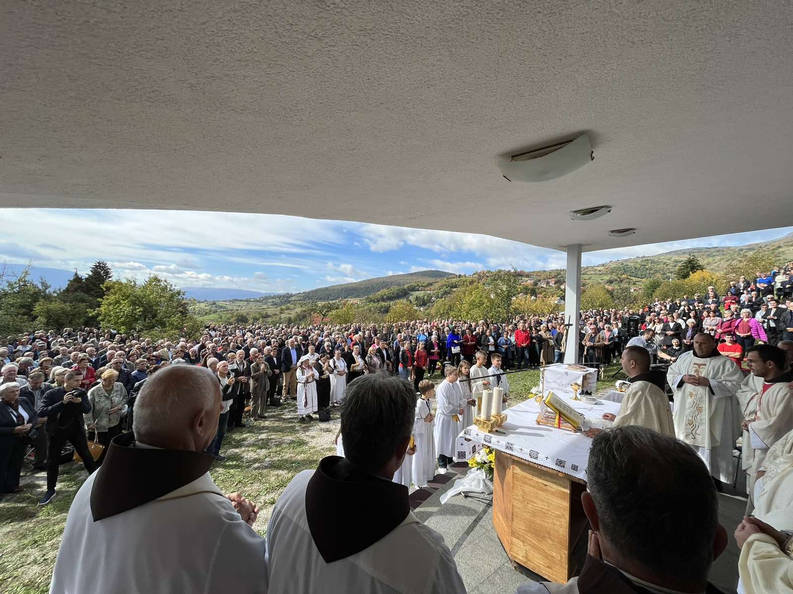 Nakon procesijskog dolaska na vanjski oltar nazočne je, a posebice hodočasnike iz udaljenih krajeva BiH, pozdravio gvardijan fra Davor Petrović..