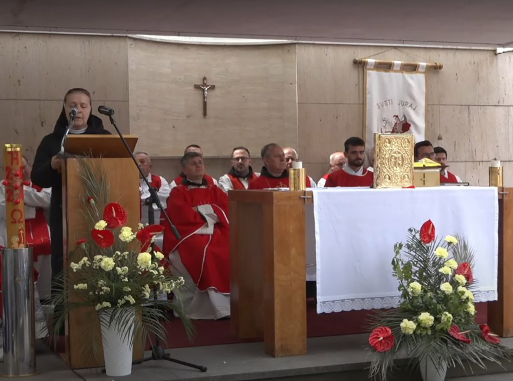 U prigodnoj propovijedi fra Zdravko je progovorio o životu Sv. Jurja, o legendi koja ga prati te kako može biti uzor vjerničkom životu u kojem se treba svjedočiti ljubav.