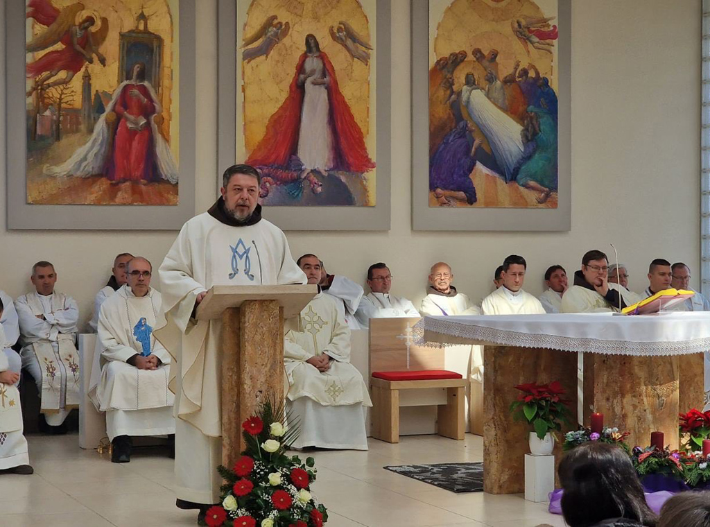 Na početku homilije, koju je naslovio Anđelov poziv i Marijin odgovor. Između rezignacije i čežnje, fra Ilija je napomenuo kako je vjerska istina o Marijinoj bezgrešnosti relativno kasno proglašena dogmom u kršćanskoj povijesti i tradiciji, "negdje sredinom pretprošloga stoljeća, ali je sami čin proglašenja Bezgrešnog začeća izrastao iz duge kršćanske vjerske tradicije".