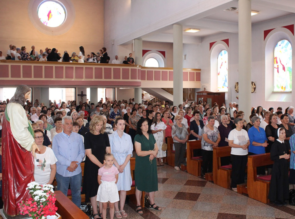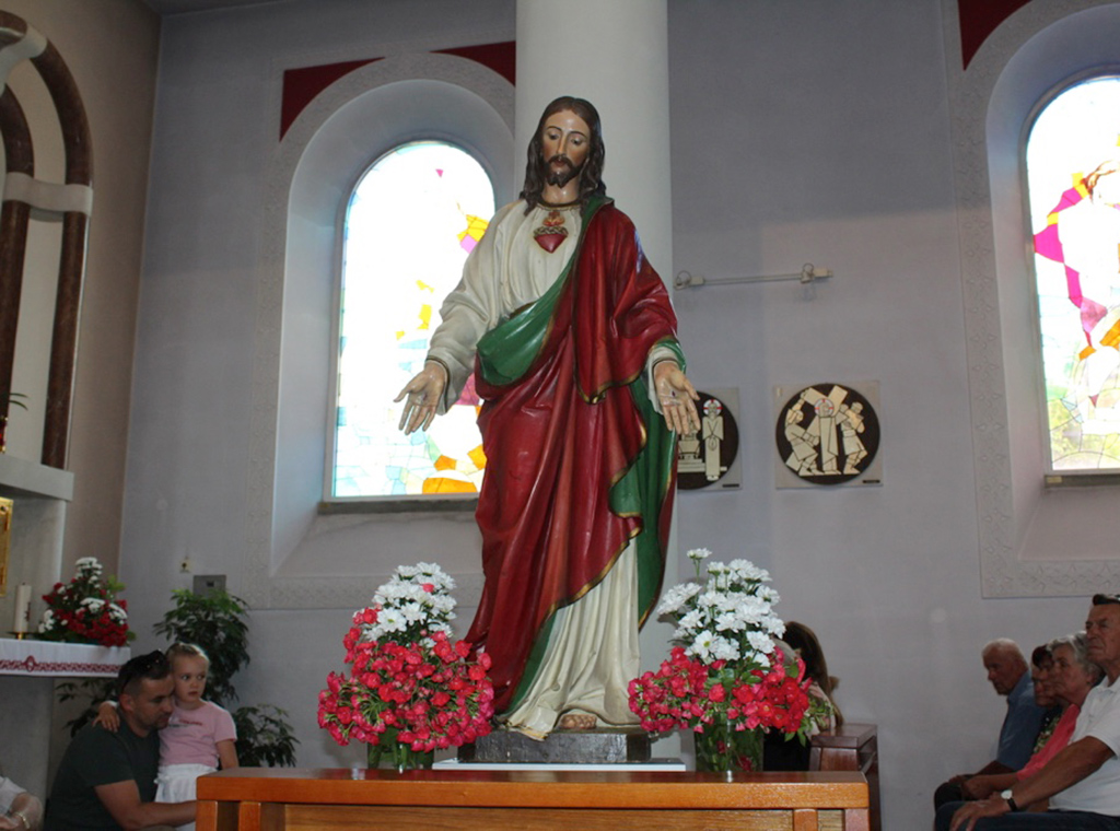 Poslije Popričesne molitve, a prije završnog misnog blagoslova, uslijedio je čin posvete hrvatskog naroda i BiH Presvetom Srcu Isusovu, tako što je zajedno sa župnikom Markom, fra Josip klečeći ispred Isusova kipa izmolio molitvu posvete, a zaziv Isuse blaga i ponizna Srca, učini srca naša po Srcu svome, pjevao je župni zbor s pukom.
