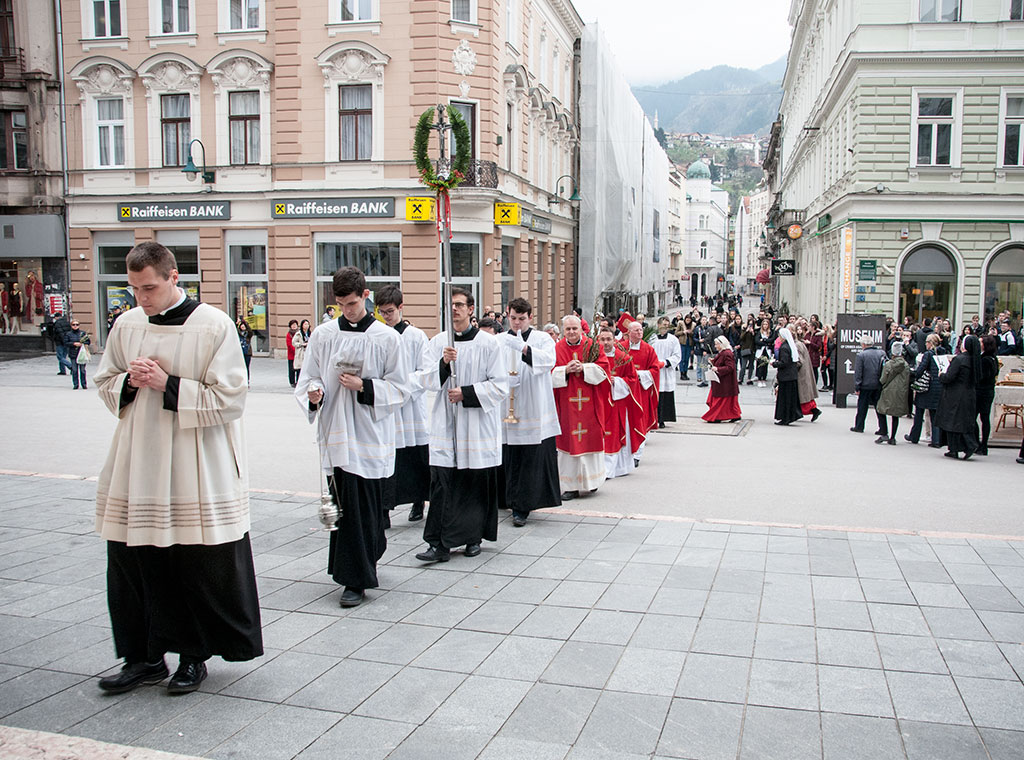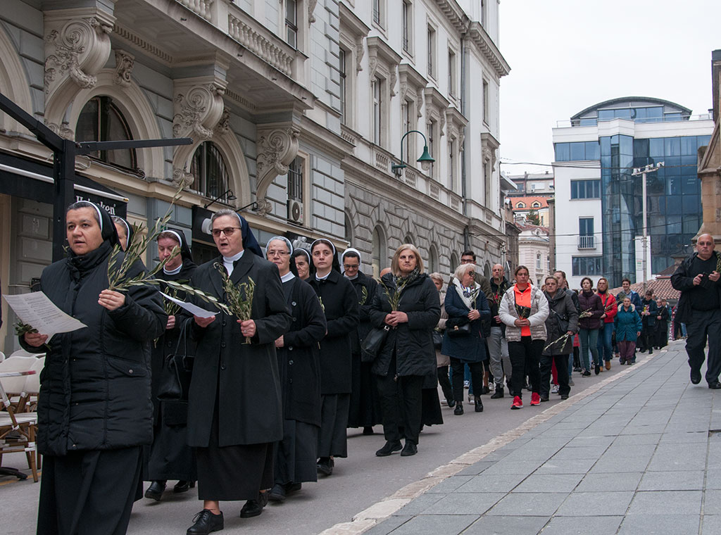 Kardinal Puljić blagoslovio je na početku mise maslinove grančice i napomenuo kako je prilog prikupljen od grančica namijenjen misijama u cijelom svijetu. Potom je u znak sjećanja na svečani Kristov ulazak u Jeruzalem oko sarajevske katedrale upriličena svečana procesija s maslinovim i palminim grančicama, u kojoj su uz kardinala i svećenike sudjelovali bogoslovi, redovnice i vjernici.