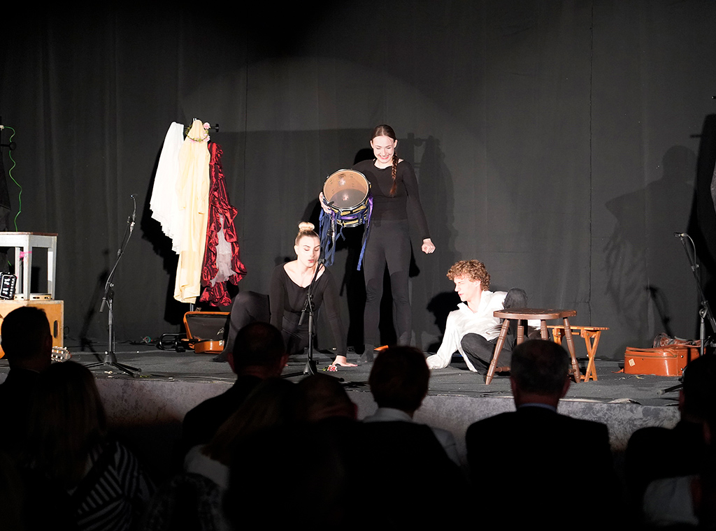 Sjajni mladi glumci – učenici Katoličkog školskog centra Sv. Franjo u Tuzli u režiji prof. Ivane Petrović izveli su jednu od najvećih drama svjetske književnosti Shakespeareovog Hamleta. Uloge su utjelovili: Dario Pojer, Iris Altumbabić i Anja Marković.