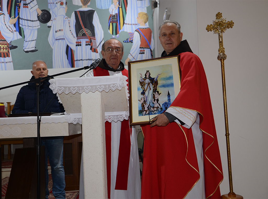 U znak zahvale za sve što čine za tu povratničku župu od samih njezin početaka obnove župnik fra Ivan darovao je sliku Gospe Koraćanske i nazočnim predstavnicima društveno-političkih vlasti: Josipu Jerkoviću, Davoru Čordašu, Mladenki Kermenc i Zdravku Belji.