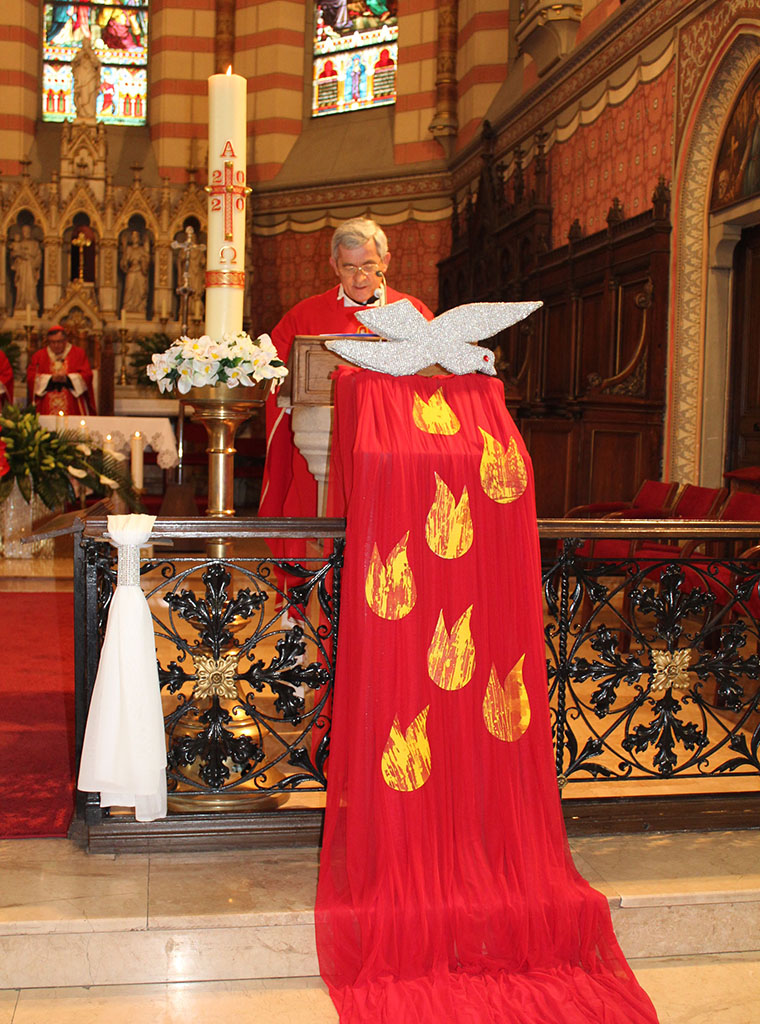 Zahvalivši župniku Majiću na predstavljanju, kardinal Puljić u prigodnoj propovijedi ukazao je na bogatstvo ovoga slavlja te najprije progovorio o svetkovini Duhova.