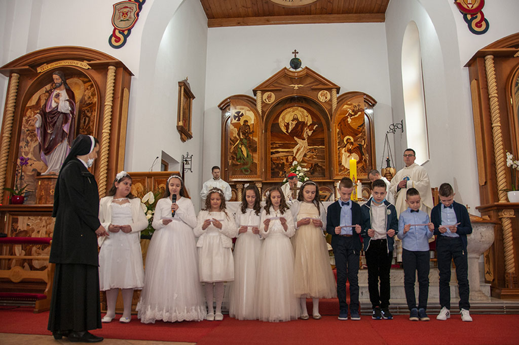 Svečano je bilo na Bijelu nedjelju, 11. travnja u župi Uznesenja Blažene Djevice Marije na Stupu gdje je tijekom pučke sv. mise vrhbosanski nadbiskup Vinko kard. Puljić podijelio sakrament Prve pričesti za 10 dječaka i djevojčica.