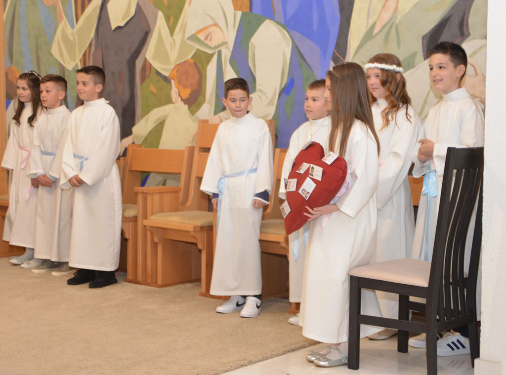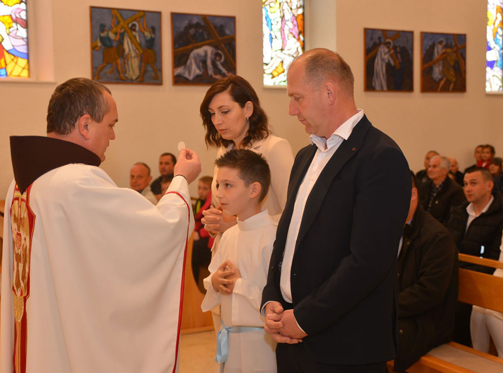 Pod svečanom svetom misom koju je predvodio župni vikar fra Marko Bandalo, sakramentu pričesti prvi je put pristupilo devet prvopričesnika: pet dječaka i četiri djevojčice.
