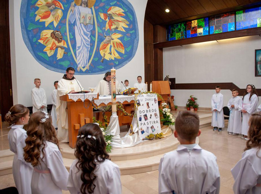 Euharistijsko slavlje svojim recitacijama uzveličali su sami prvopričesnici, dok je pjevanje animirao zbor FRAMA-e župe Rumboci.