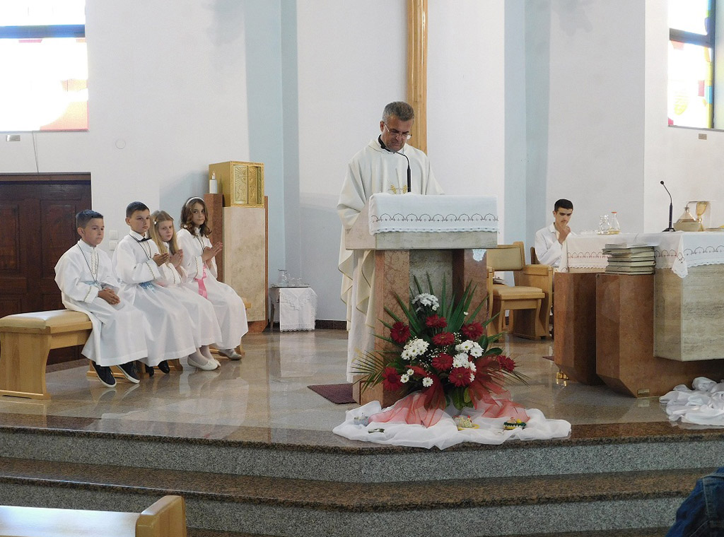 Slavlje započeto u župnoj crkvi, nakon fotografiranja i podjele uspomena, nastavljeno je za obiteljskim stolovima slavljenika.