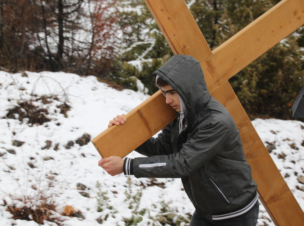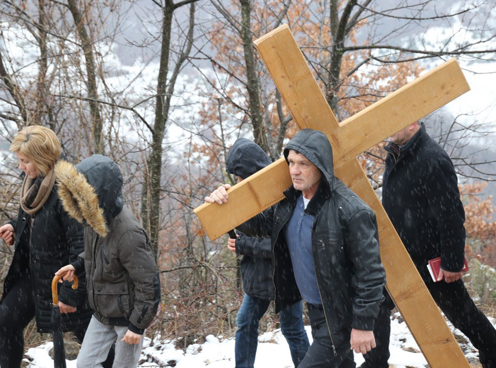 Veliki drveni križ od prve postaje ponio je župnik, a potom prijavljene križonošekoji su ga iznijeli do uzvišenja Gradac.
