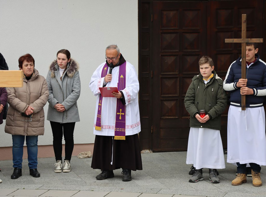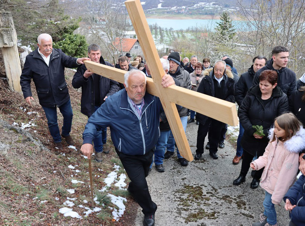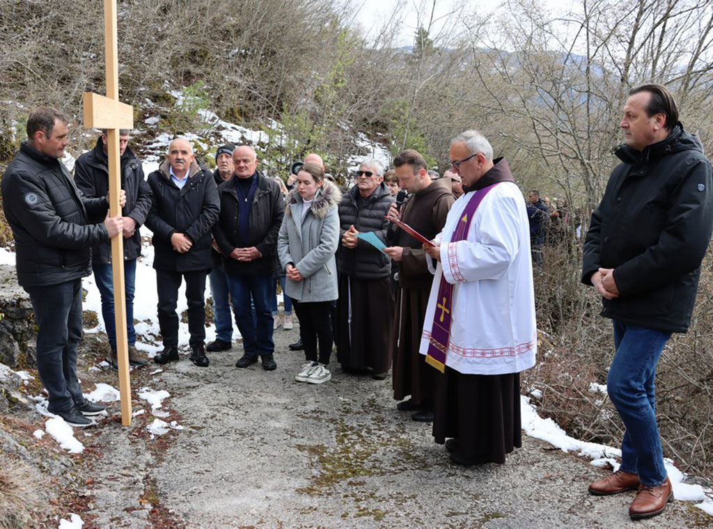 Kroz pjevanje Gospina plača, molitvu krunice i promišljanja teksta Puta križa vjernici su se u procesiji uspeli na uzvišenje Gračac koje je ove nedjelje bilo ogrnuto snježnim pokrivačem.