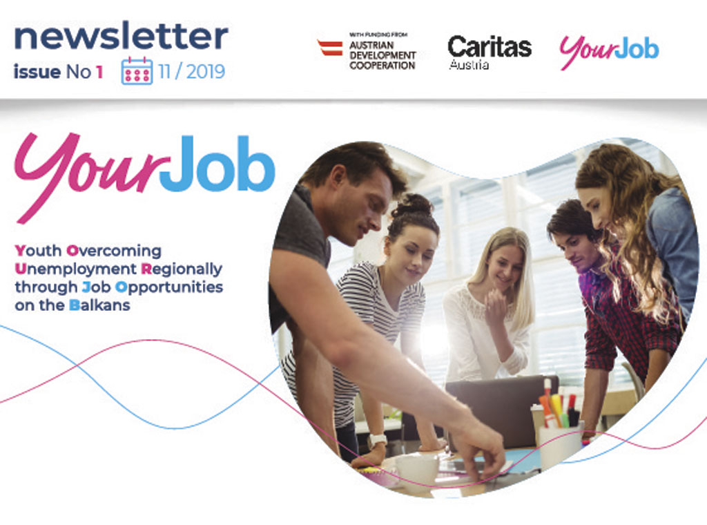 Caritas Bosne i Hercegovine osmislio je dizajn te uredio prvi broj regionalnih e-novina za projekt "YourJob". Regionalne novine su napisane na engleskom jeziku, biti će pripremljene tromjesečno, a svaki broj će obrađivati drugačiju tematiku.