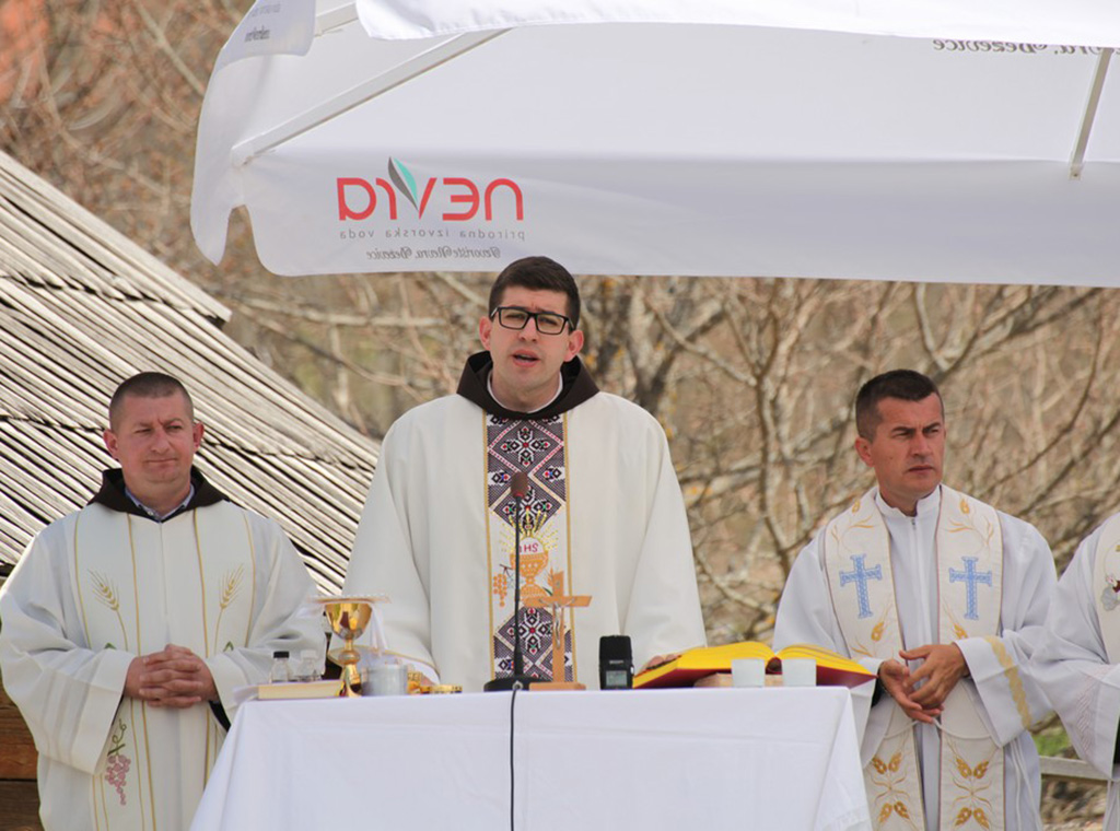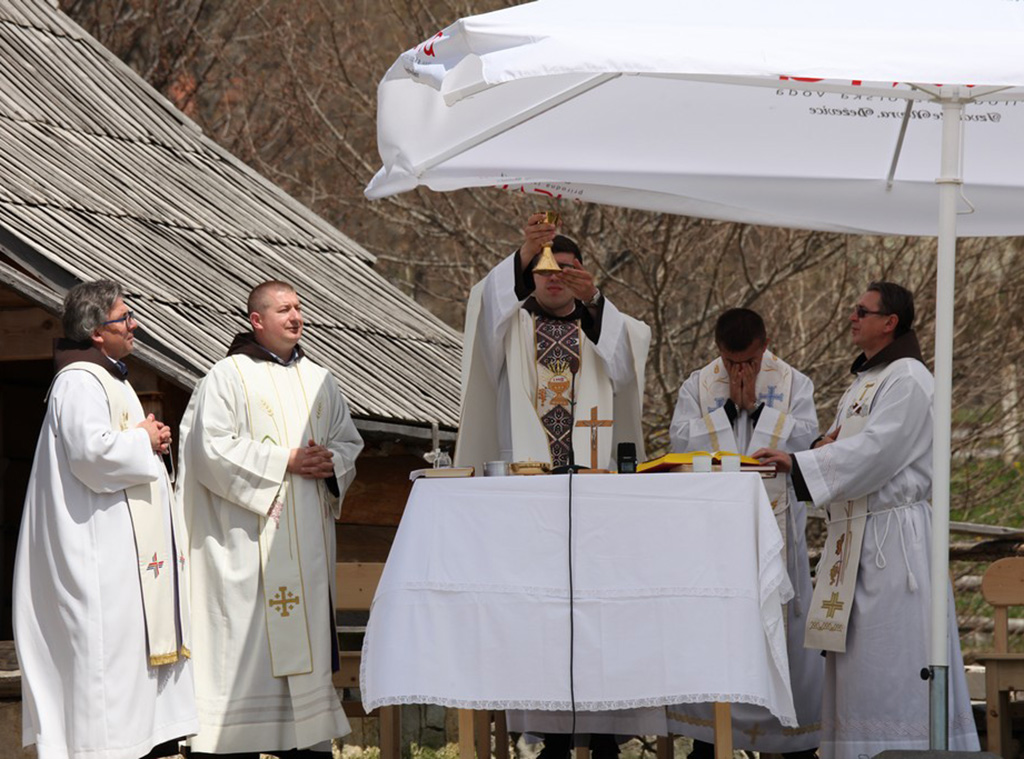 Druženje je 1. svibnja započelo svetom misom koju je, u krugu replike stare ramske kuće, replike doma Dive Grabovčeve, predvodio sin ove župe fra Antonio Baketarić, vikar u župi Svetoga Duha u Novoj Biloj, uz suslavlje rumbočkog župnika fra Jure Perića i još trojice svećenika.