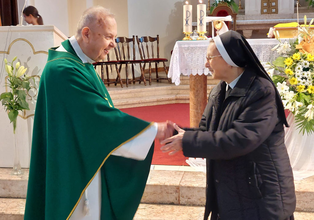 Okupljenu vjerničku zajednicu, njih oko 150, na početku pozdravio je župnik Kustura koji je istaknuo kako je svaka euharistija u svojoj biti zahvala te je potaknuo prisutne na molitvu za s. Geraldu, ali i na zahvalu Bogu što je kroz redovničko služenje jubilarke župu u Novom Sarajevu ispunio brojnim milostima. „S. Geralda je u ovoj župi na službi 34 godine. Poznata je po svojoj skromnosti i samozatajnosti, a osobito se istaknula u brizi za stare i nemoćne koje je dok je mogla obilazila u njihovim stanovima. Time je svjedočila konkretnu Božju ljubav i ljepotu redovničkog poziva“, kazao je župnik uz poziv vjernicima na molitvu za svećenička i redovnička zvanja.
