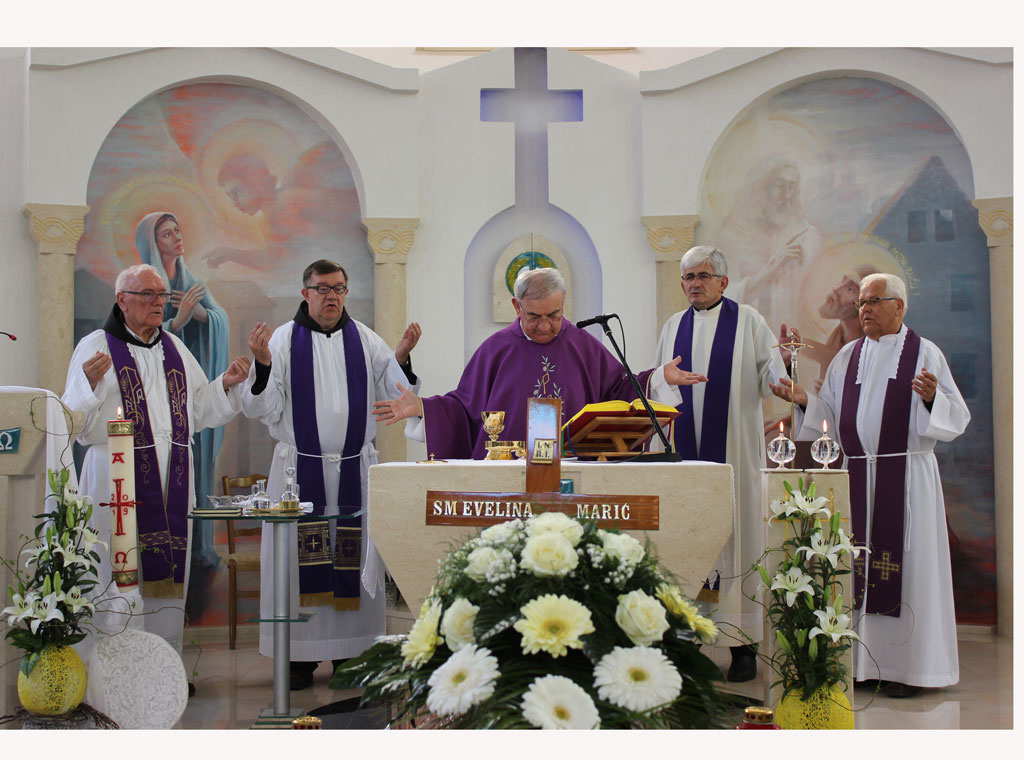 Misa zadušnica, koju je predvodio duhovnik sestara fra Tomislav Pervan, slavljena je u samostanskoj kapeli Sv. Franje. Koncelebrirali su i don Željko Majić, generalni vikar mostarsko-duvanjske i trebinjsko-mrkanske biskupije, fra Ivan Marić, bratić pokojne s. Eveline, fra Josip Jolić te fra Andrija Nikić.