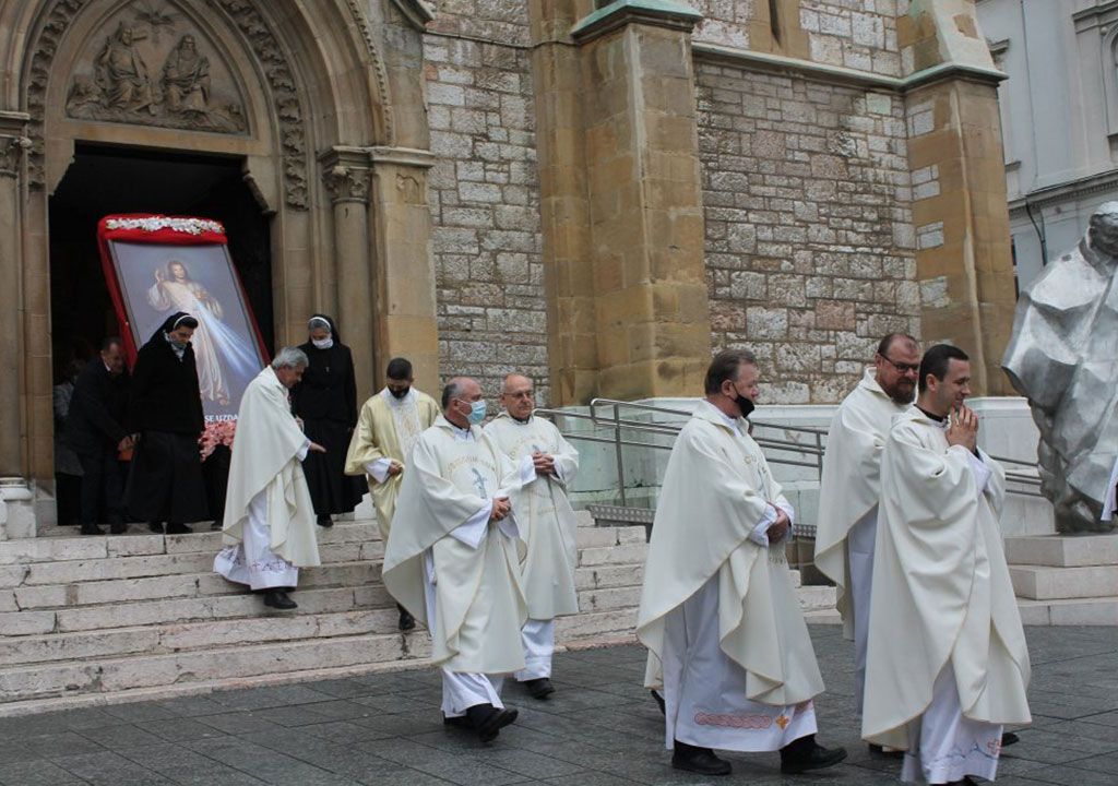 Nakon popričesne molitve svećencii su došli pred sliku Milosrdnog Isusa, a cijela vjernička zajednica pobožno je molila Litanije Milosrdnom Isusu. Potom je uslijedila svečana procesija oko katedrale u kojoj su časne sestre i članovi župnih vijeća katedralne župe nosili sliku Milosrdnog Isusa. Sveta Misa završena je Molitvom Milosrdnom Isusu i blagoslovom.