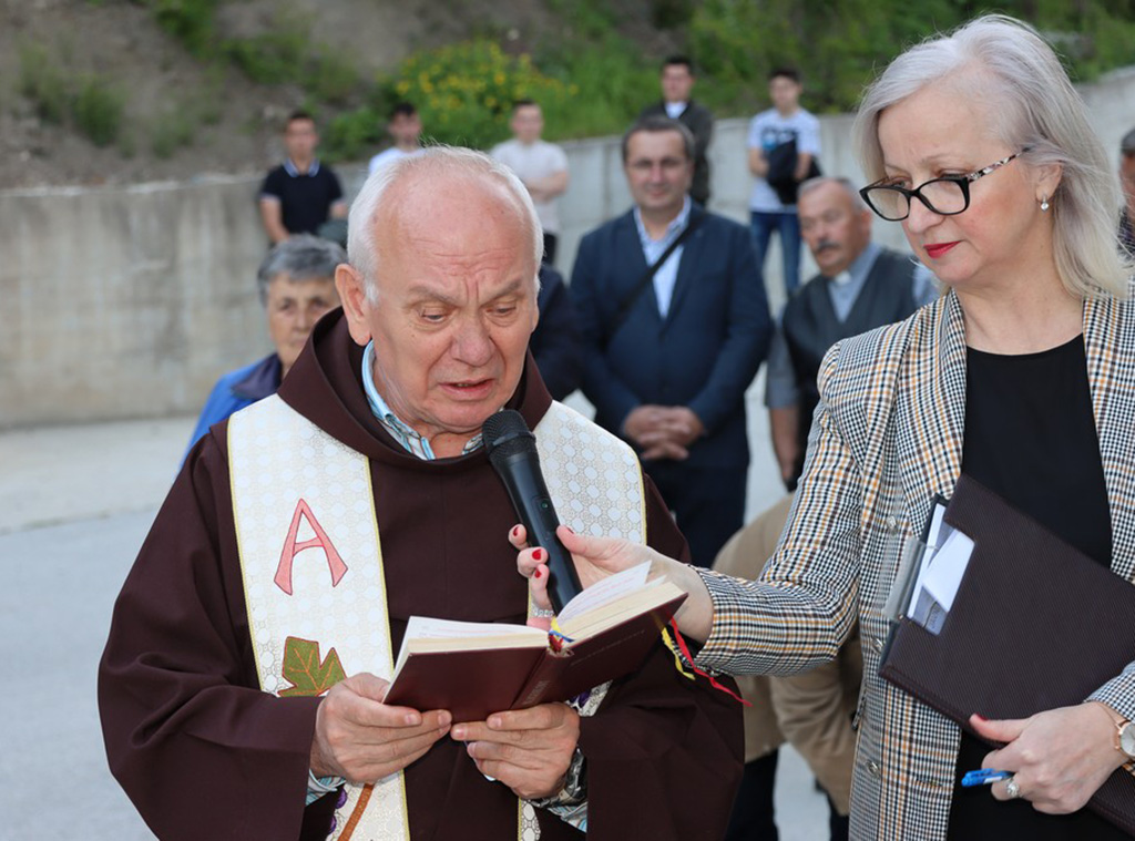 Spomenik, na kojem su uklesana imena 13 imena poginulih i nestalih Ustiramljana u Drugom svjetskom te šest poginulih u posljednjem ratu, blagoslovio je fra Anto Cvitković, župnik župe Gračac.