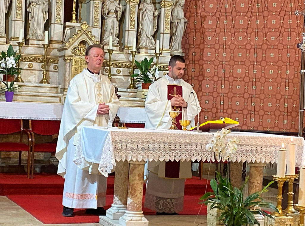 Svetu Misu u 18:00h slavio je katedralni župni vikar vlč. Domagoj Matijević uz koncelebraciju vlč. Marka Stanušića.