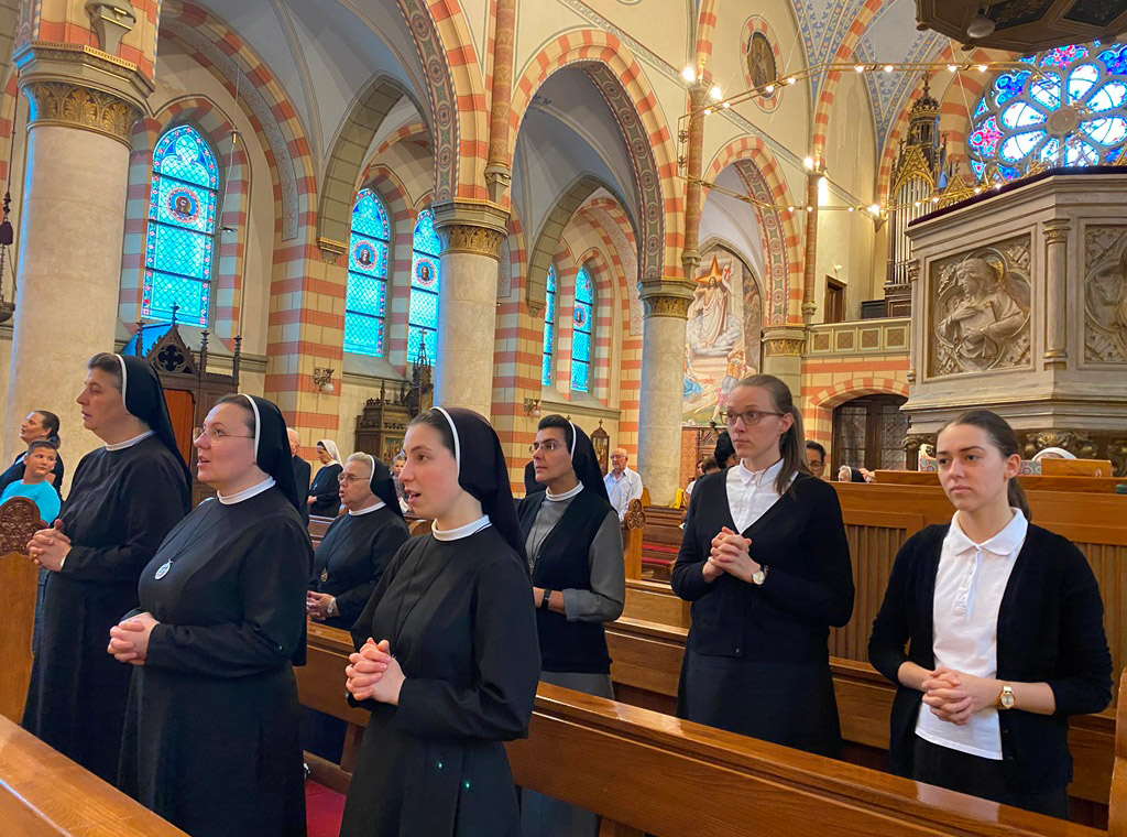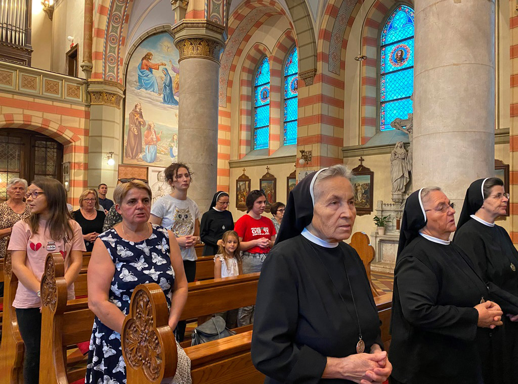 Prije euharistijskog slavlja sestre su sa prisutnim vjernicima iskazale pobožnost prema Blaženoj Djevici Mariji moleći krunicu.