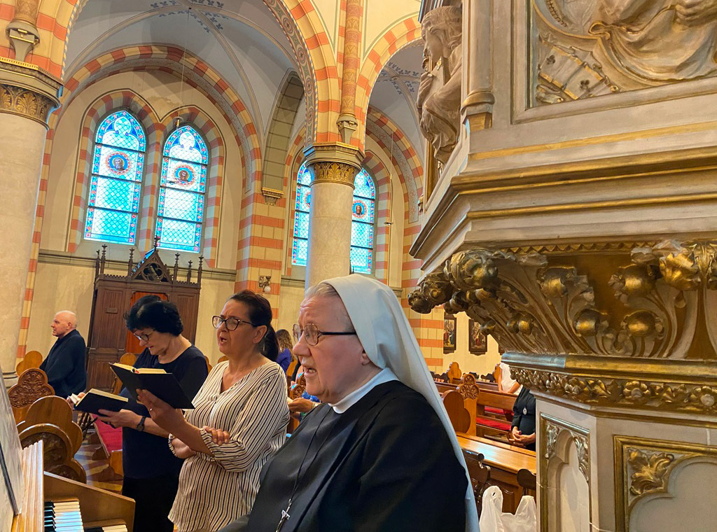 Misno slavlje je sviranjem i pjevanjem animirala milosrdnica s. Petronila Kovačević zajedno sa župnim katedralnim zborom.