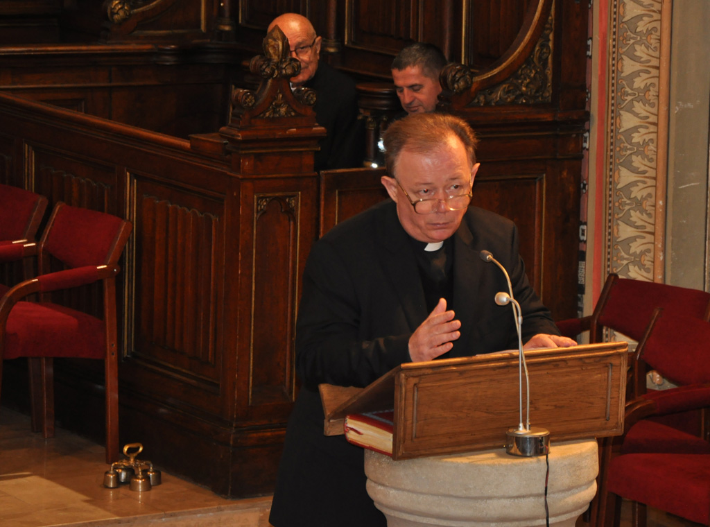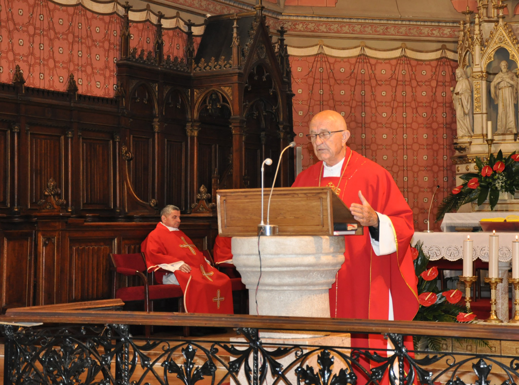 Nakon naviještenog evanđelja mons. Meštrović je progovorio o Konstituciji Drugog vatikanskog sabora o liturgiji koja jasno naglašava da će "sveta glazba biti to svetija, što bude tješnje povezana s bogoslužnim činom, bilo da srdačnije izrazi molitvu, bilo da potiče jednodušnost, bilo da svete obrede obogati većom svečanošću (SC 112)". Nadalje je posvijestio kako u Konstituciji također stoji da "bogoslužni čin poprima plemenitiji oblik kad se službe Božje svečano slave pjevanjem (SC 113)".