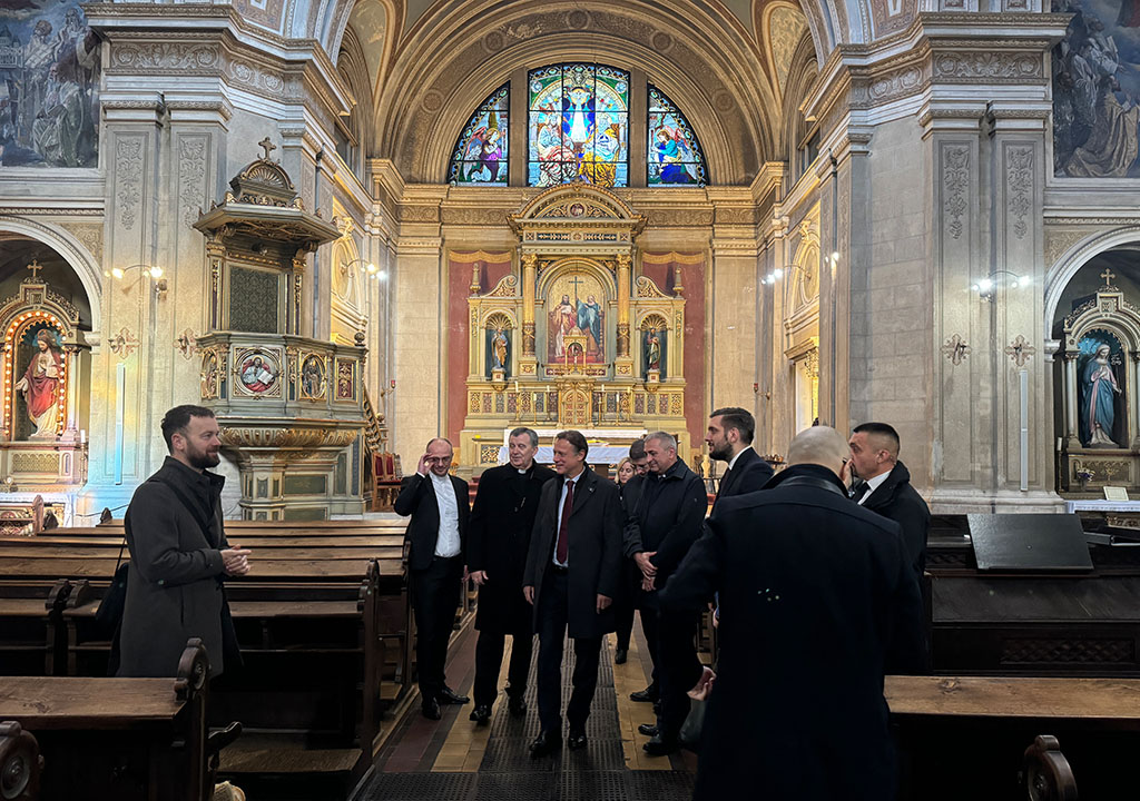 Mons. Vukšić zajedno s dijelom članova Ordinarijata i upravom Vrhbosanskog bogoslovnog sjemeništa najprije je dočekao goste iz Hrvatske u sjemenišnoj crkvi Sv. Ćirila i Metoda gdje ih je ukratko upoznao s poviješću i potrebnom obnovom ove crkve što je jedan od važnijih projekata Vrhbosanske nadbiskupije u narednom razdoblju.