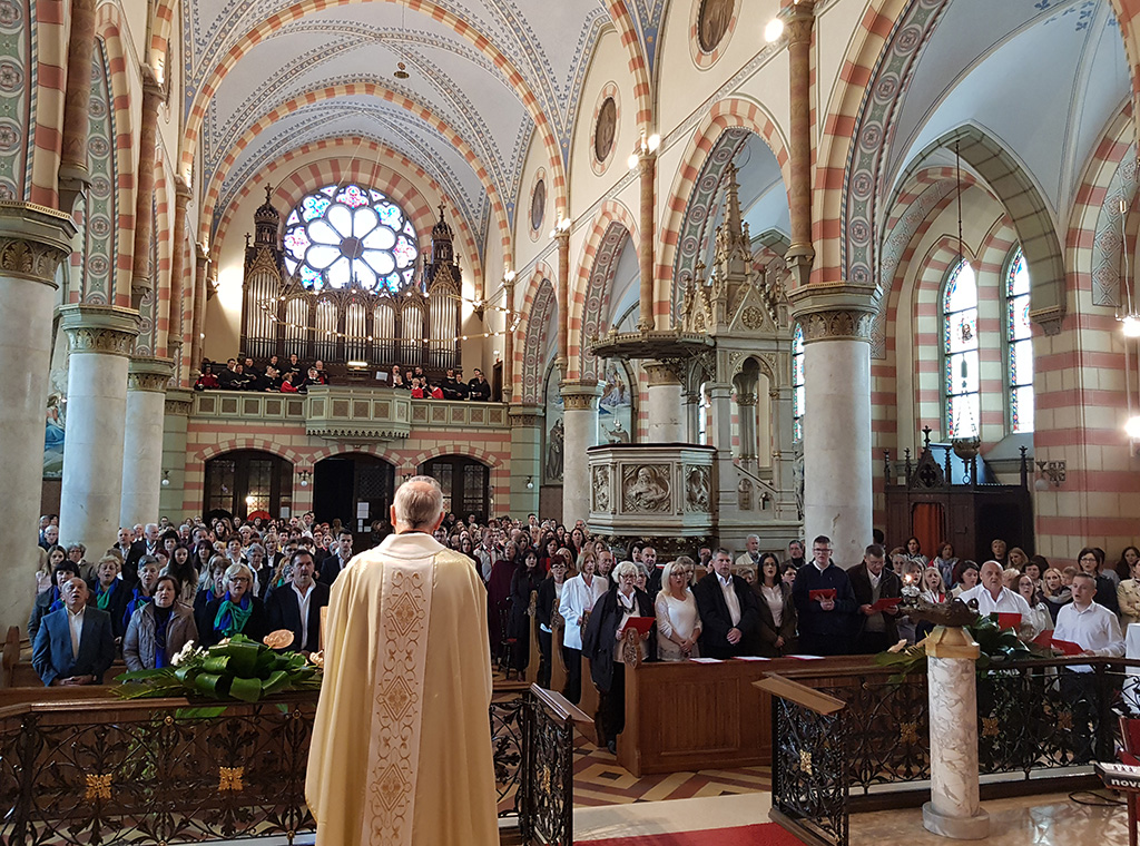 Pjevačima čiji su glasovi ispunili katedralu, prenio je pozdrave vrhbosanskog nadbiskupa Vinka kard. Puljića te izrazio radost zajedništva.