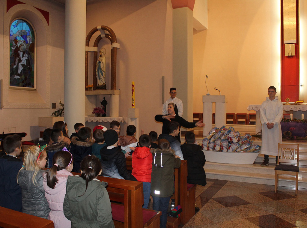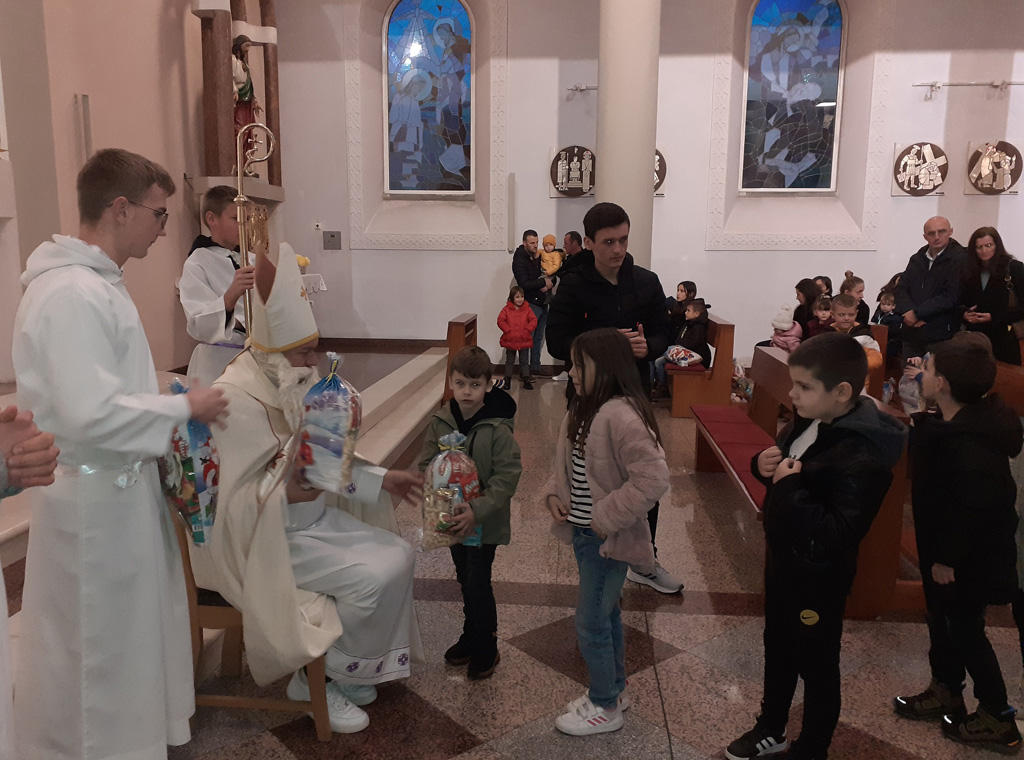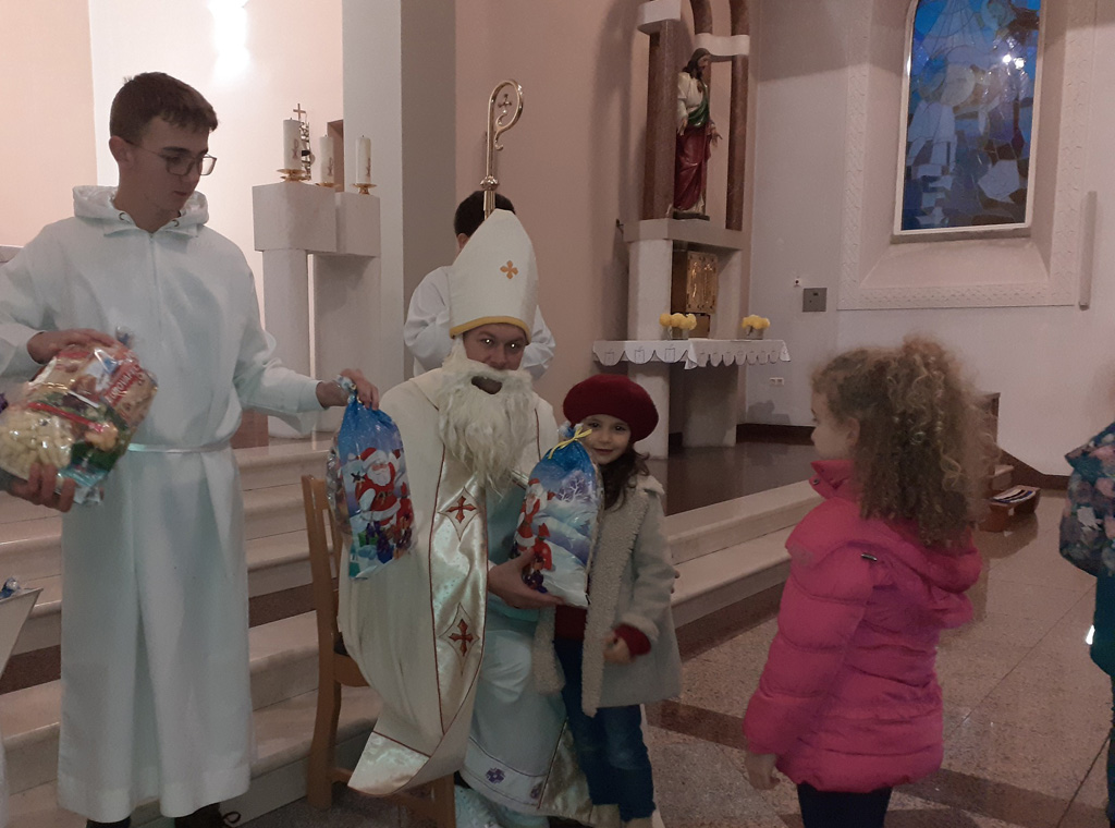 Prije početka večernje svete mise, 6. prosinca, za djecu predškolske dobi te vjeroučenicima nižih razreda osnovne škole upriličena je podjela darova. Sveti je Nikola uz pomoć mladih podijelio prigodne darove prvo malenima koje su donijeli ili doveli njihovi roditelji, a zatim i vjeroučenicima.