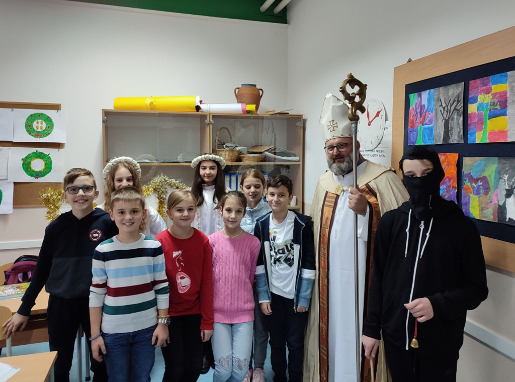 Posjetio je i osnovnu školu Jaklići, gdje je obišao i darovao svaki razred te nastavnike. Djeca su ga dočekala recitacijama, te su ih zanimali odgovori na mnogobrojna pitanja.