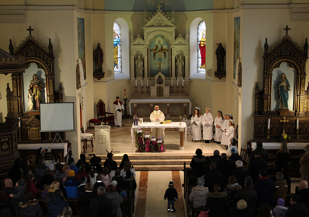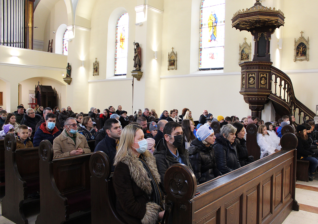 Euharistijsko slavlje na kojem je sudjelovalo 80-ak djece predškolskog i školskog uzrasta te njihovi roditelji i drugi članovi obitelji predslavio je župnik don Dražen Kustura. U prigodnoj propovijedi najmlađima je predstavio lik Sv. Nikole te ih je podsjetio kako je taj svetac živio u trećem stoljeću te da je djelovao kao biskup u Miri. „Bio je poznat po tome što je rado drugima pomagao. Od tada pa do danas uvijek iznova obraduje onu djecu koja su bila dobra i poslušna. Njegov uzor, kao i mnogim drugim svecima, bio je Isus Krist“, poručio je, među ostalim, don Kustura najmlađim svojim župljanima te ih potaknuo da i oni u svome životu budu slični Isusu Kristu, ali i Sv. Nikoli tako što će biti: poslušni svojim roditeljima i nastavnicima, biti darežljivi jedni prema drugima, naučiti pomagati onima koji su u potrebi i najvažnije od svega redovito sa svojim roditeljima ići na sv. misu.