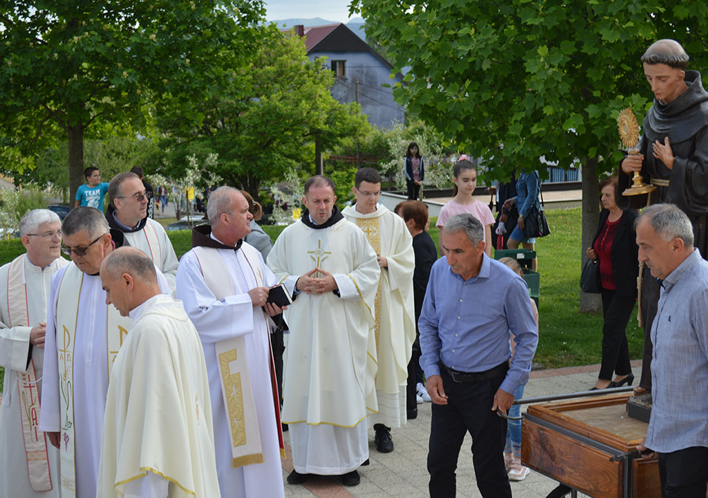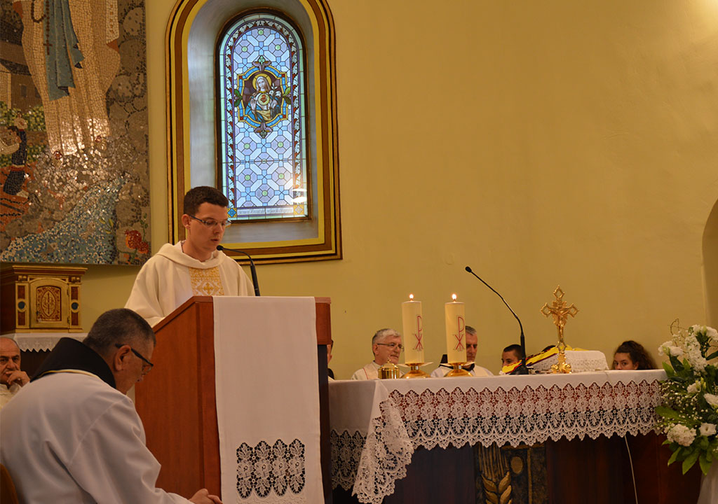 Središnje euharistijsko slavlje predvodio je mladomisnik fra Renato Galić u koncelebraciji sa sedam svećenika među kojima su bili župnik fra Željko Grubišić i župni vikar fra Petar Ljubičić.