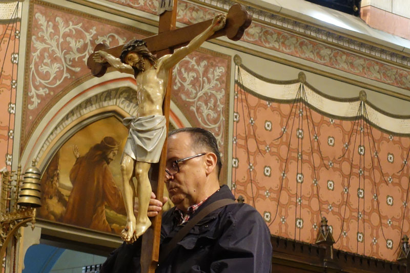 Pobožnost Križnog puta prije mise predvodio je katedralni župnik i sarajevski dekan preč. Mato Majić. Prigodna razmišljanja čitali su i svijeće nosili te misno čitanje i molitvu vjernika čitale sestre Služavke Malog Isusa, juniorke i kandidatice. Također su animirale liturgijsko pjevanje uz orguljsku pratnju redovitog predvoditelja Svete misa u sarajevskoj samostanskoj zajednici Egipat vlč. Marka Stanušića, javlja KTA.