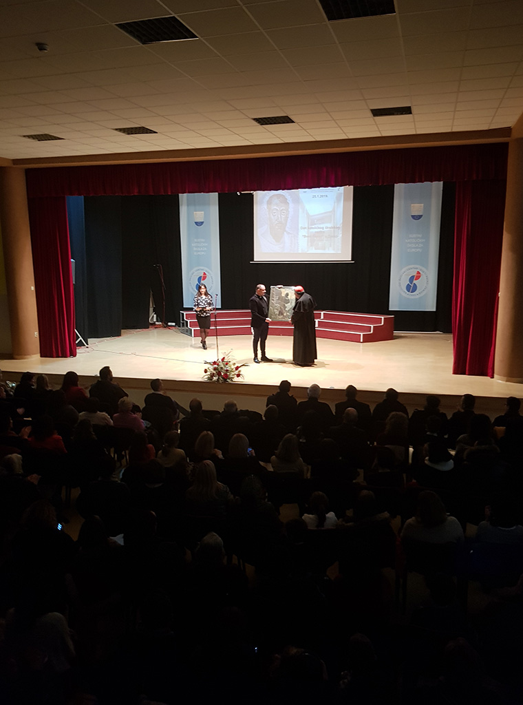 Pri kraju programa dugogodišnji djelatnici zeničkoga KŠC-a koji odlaze u mirovinu: domar Vlado Jonjić i kuharica Reza Krišto koja je vodila školsku kuhinju, prigodne zahvale dobili su iz ruke Vinka kard. Puljića.