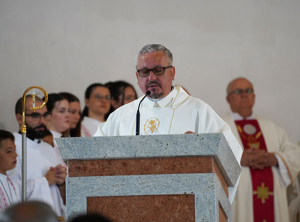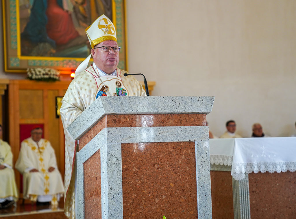 "Isus u evanđelju govori o Kraljevstvu u slikama otkrivanja: 'blago skriveno na njivi i skupocjeni biser'. Riječ je o sreći koja se plaća cijenom odvojenosti, odricanja i podložnosti. Seljak, trgovac više su nego zadovoljni pronađenim blagom. Spremni su sve prodati samo da dođu u posjed toga blaga. Kraljevstvo nebesko – Evanđelje, milost, prijateljstvo s Bogom – to je sakriveno blago prisutno u svijetu – prisutno u obitelji. Iako nam je blizu, mnogi ga ne otkrivaju. Ima onih koji ga otkriju ali ga dovoljno ne vrednuju, zanemaruju ga jer više od njega vole zemaljsko kraljevstvo, zemaljske užitke. No, samo onaj koji ima “pronicavo srce“, koji razlučuje dobro i zlo, koji može razlikovati između vječnoga i prolaznoga, između prividnoga i bitnoga, samo takav donosi radikalnu odluku – prodaje sve što ima s ciljem da stekne to blago. Isus nas poziva da uđemo u Kraljevstvo i sudjelujemo u radosti vječne gozbe", rekao je biskup Semren te potom progovorio o obiteljskom životu koji je škola ljubavi i jamstvo trajanja.