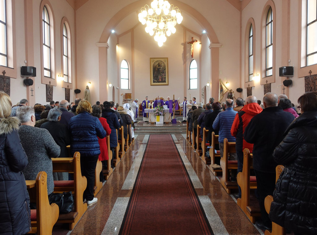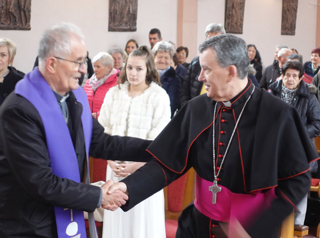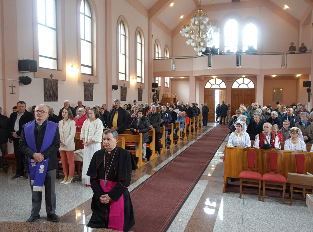 Budući da je ovo bio prvi dolazak mons. Vukšića, u službi vrhbosanskog nadbiskupa, u ovu župu on se najprije pomolio pred Presvetim Oltarskim Sakramentom te blagoslovio i kratko pozdravio župnika vlč. Ivana Ravlića i vjernike koji su već ispunili crkvu.