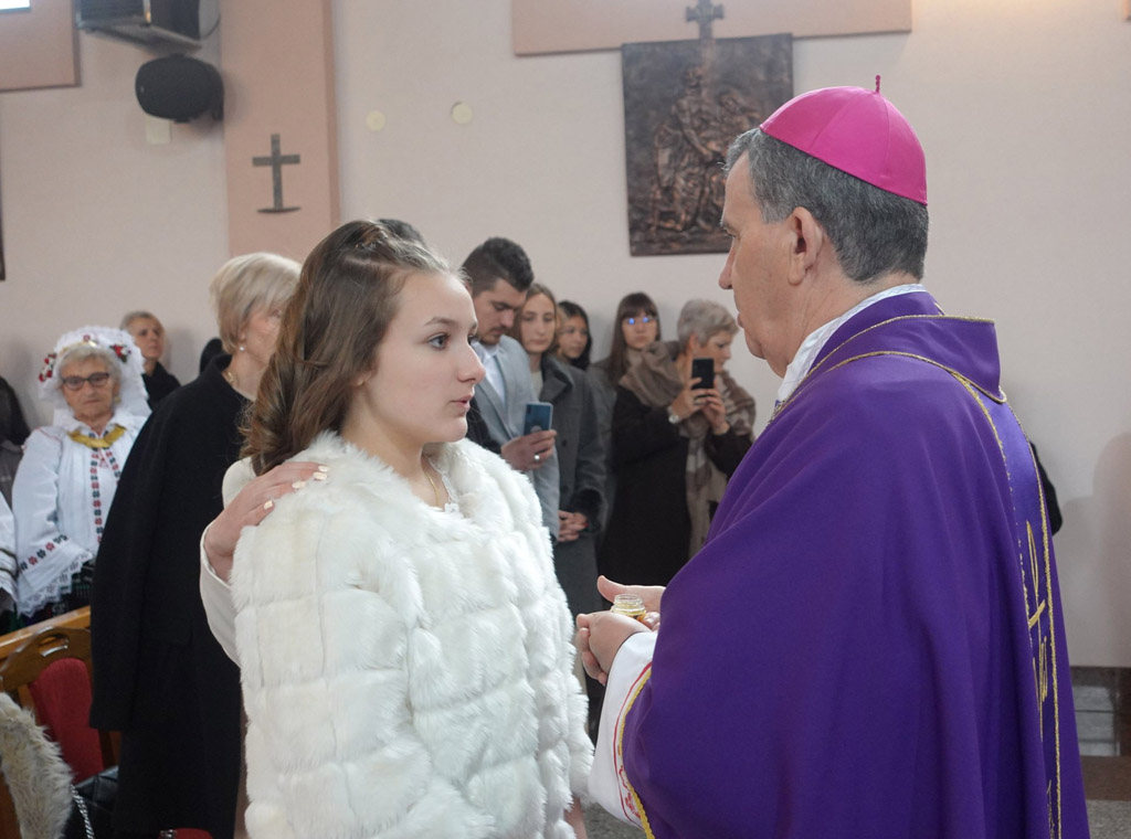 Nadalje je posvijestio misna čitanja te je poslije homilije uslijedio obred krizme kada je nadbiskup Tomo podijelio sakrament potvrde učenici Ivoni.
