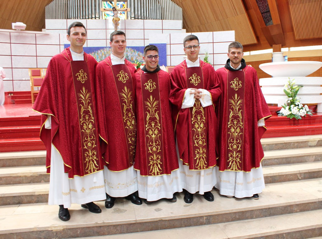 Petoricu hercegovačkih đakona za svećenike je u mostarskoj katedrali Marije Majke Crkve na svetkovinu Sv. apostola Petra i Pavla u subotu 29. lipnja zaredio biskup mostarsko-duvanjski i apostolski upravitelj trebinjsko-mrkanski RatkoPerić.
