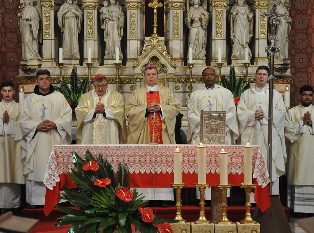 U koncelebraciji s nadbiskupom, kada se ujedno u Vrhbosanskoj nadbiskupiji obilježava i Dan Papinskog misijskog djela Sv. Petra, bili su vrhbosanski nadbiskup u miru Vinko kard. Puljić, otpravnik poslova Apostolske nuncijature u BiH mons. Amaury Medina Blanco, provincijal Franjevačke provincije Bosne Srebrene fra Jozo Marinčić, generalni vikar nadbiskupije mons. Slađan Ćosić, kanonici, dekani te ostalo svećenstvo.