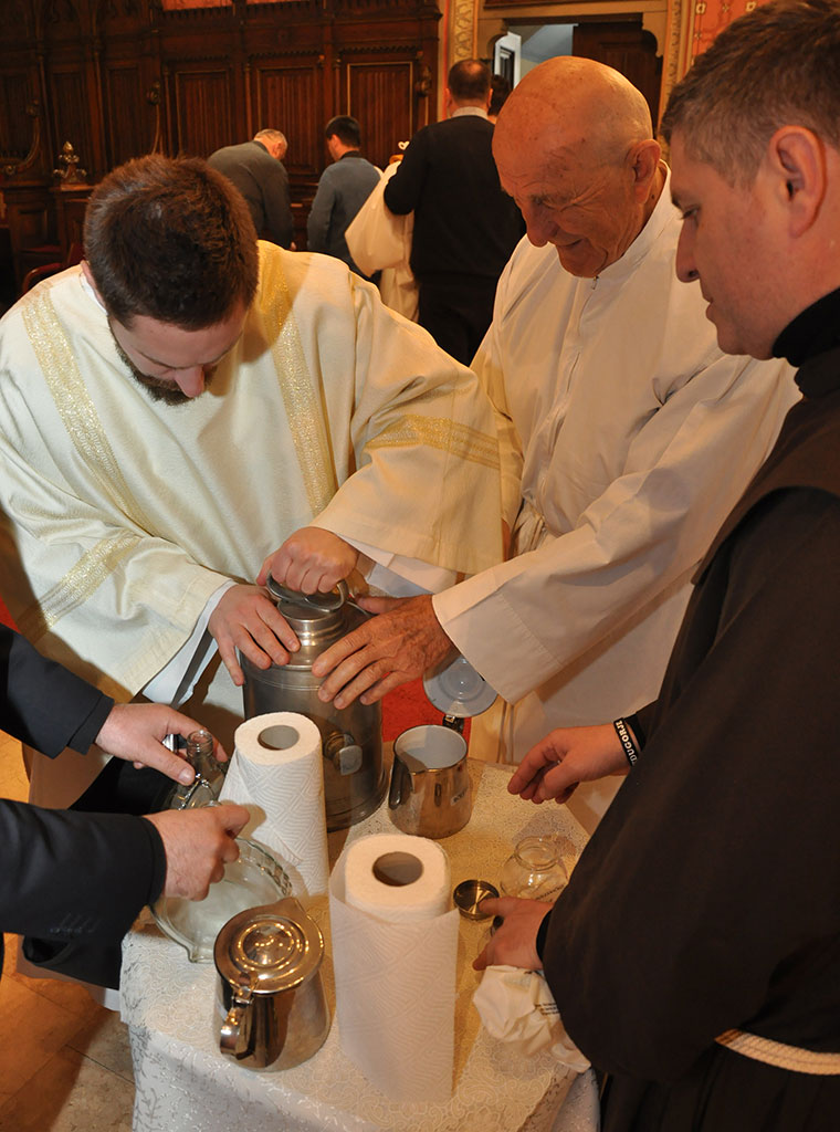 Poslije popričesne molitve mons. Tomo pristupio je posveti krizmenog ulja, koje se koristi kod krštenja, potvrde, ređenja prezbitera i biskupa te kod posvete crkve i oltara.