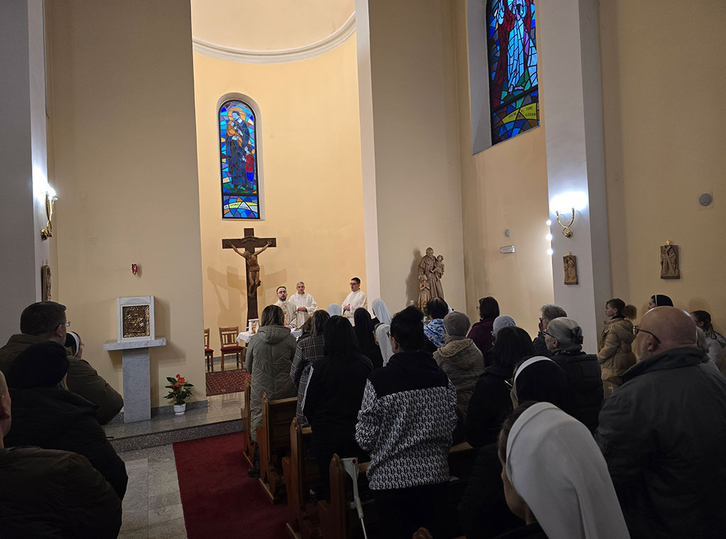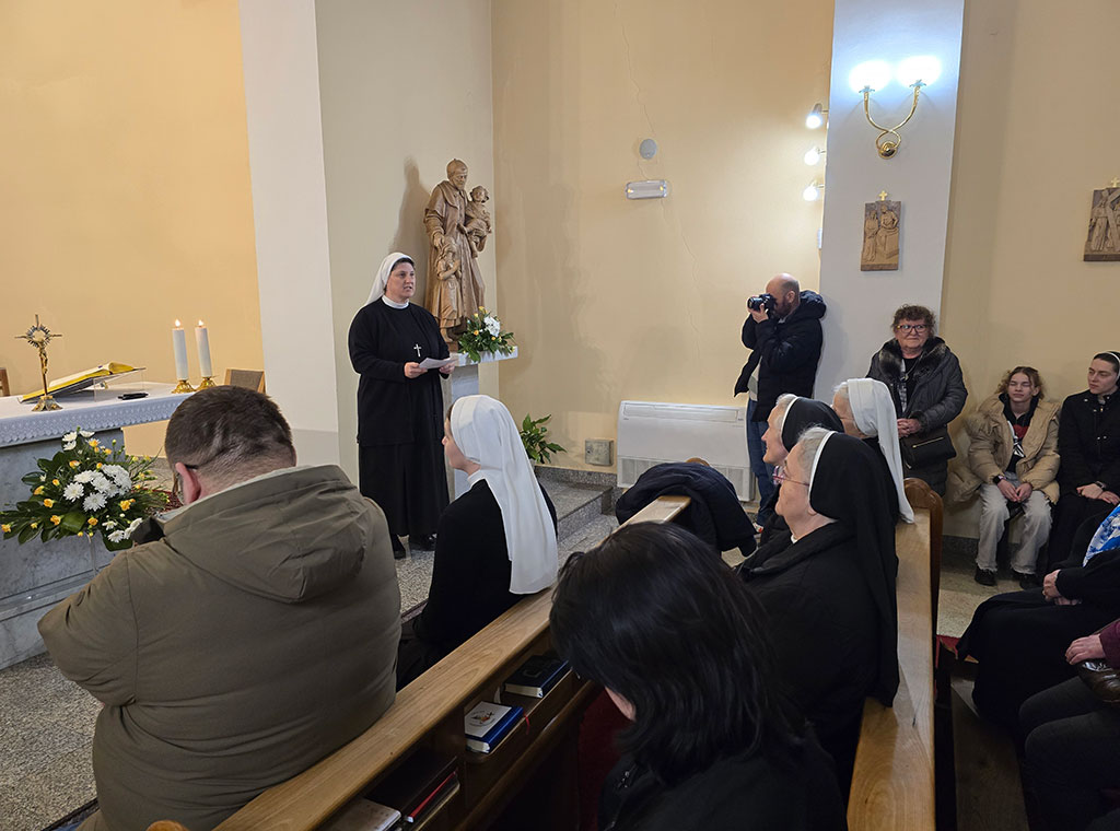 Poslije popričesne molitve pozdrav i zahvalu uputila je provincijalna glavarica s. Augustina na osobit način izričući riječi zahvale djelatnicima Rehabilitacijskog centra SPES koji su sudjelovali na misi, a svoje prostorije imaju u kompleksu samostana Sv. Vinka. Liturgijsko pjevanje, uz glasovnu potporu nazočnih, predvodio je bogoslov fra Marko Spajić.
