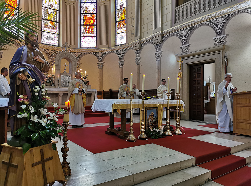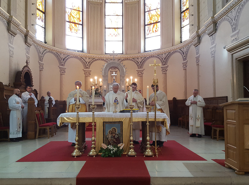 U koncelebraciji sa župnikom bilo je šest svećenika, a posluživao je đakon Vedran Ćosić. S obzirom na odredbe koje je zbog pandemije koronavirusa donijela Vrhbosanska nadbiskupija, slavljena je tiha misa tj. nije bilo liturgijskoga pjevanja. Budući da je već prije bila najavljena proslava župnoga patrona na euharistijsko slavlje došlo je 50-ak vjernika.