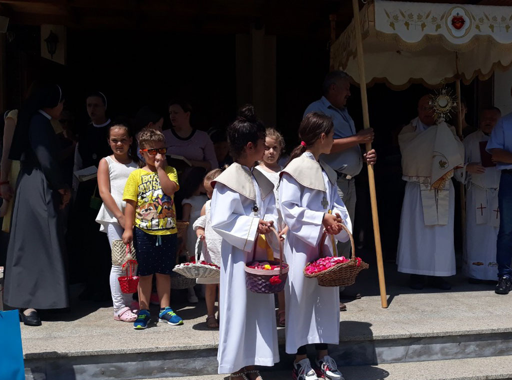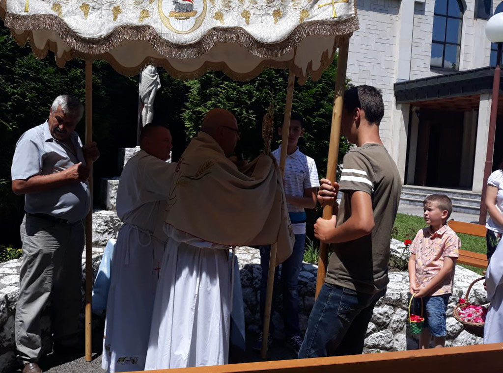 Euharistijsko slavlje predvodio je vlč. Jakov Pavlović, vojni kapelan, koji je i prigodnoj propovijedi naglasio važnost i značenje svetkovine Tijelova, a nakon svete mise uslijedila je procesija u krugu župnog i samostanskog dvorišta sestara Služavki Maloga Isusa, koju je predvodio župnik, vlč. Ilija Karlović.