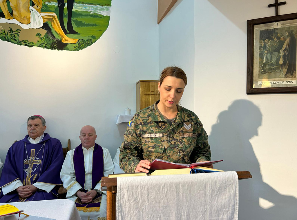 Uslijedila je euharistija koju je slavio mons. Vukšić u koncelebraciji s generalnim vikarom Vojnog ordinarijata u BiH mons. Željkom Čuturićem, kancelarom Vojnog ordinarijata don Josipom Tadićem, vojnim kapelanom don Ljubom Zelenikom i još šestoricom svećenika.