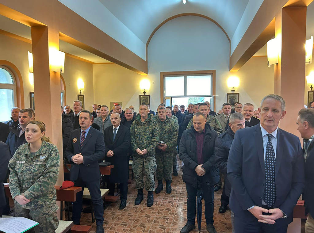Polaganje vijenaca ispred spomen obilježja u vojarni započelo je u 10:30 h, a opijelo za sve poginule i preminule pripadnike ove postrojbe izmolio je vrhbosanski nadbiskup i apostolski upravitelj Vojnog ordinarijata u BiH mons. Tomo Vukšić.