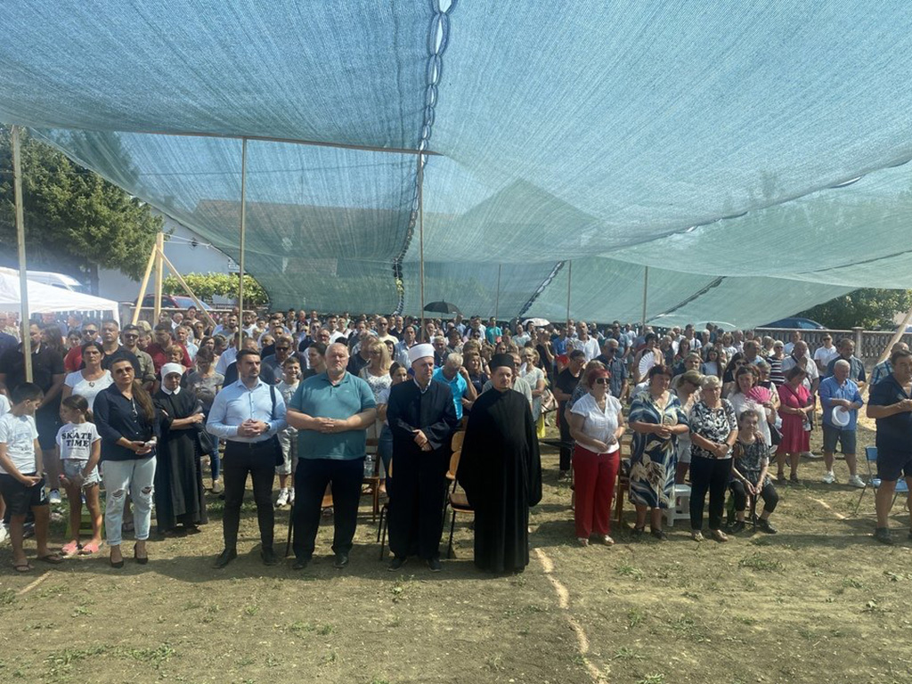 Središnju misu na svetkovinu Velike Gospe slavio je banjolučki biskup mons. Željko Majić uz koncelebraciju petorice svećenika među kojima su bili: dekan Prijedorskog dekanata preč. Marko Vidović, župnik iz Sasine vlč. Adolf Višaticki, župnik HKM u Frankfurtu fra Petar Komljenović te upravitelj župe Sanski Most fra Tomislav Svetinović.